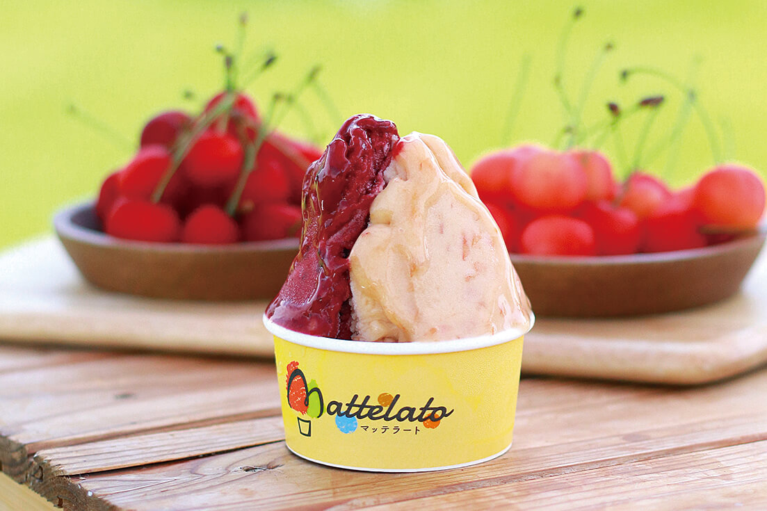店名の「mattelato」は、佐渡の方言で「すごい」を意味する「まって」とジェラートを掛け合わせたもの。その名の通り、佐渡産のイチゴやさくらんぼ、白桃など、旬のフルーツを贅沢に使った本格ジェラートが楽しめる。常時6種類のフレーバーが並び、好みの2種類を選べる『ダブル』が人気。佐渡の恵みをぎゅっと詰め込んだ、特別な一口を味わおう。