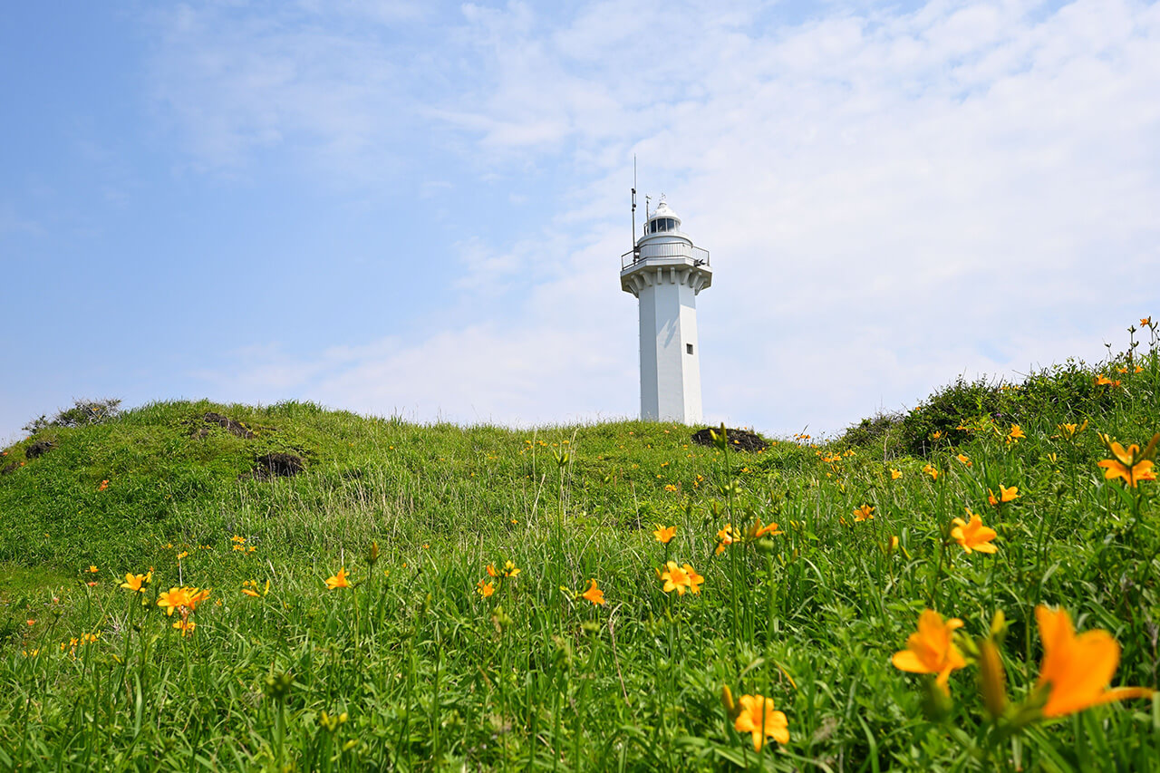 佐渡の最西端に位置する沢崎鼻灯台は、高さ24.2mを超える島内で最も高い灯台。先代の灯台は、歌人・与謝野晶子が歌に詠んだことでも知られている。灯台内部への立ち入りはできないが、断崖の下には海底火山の噴火で生まれた枕状溶岩が広がっている。のどかな海風を感じながら走る、心地よい海岸線のドライブスポットとしてもおすすめ。